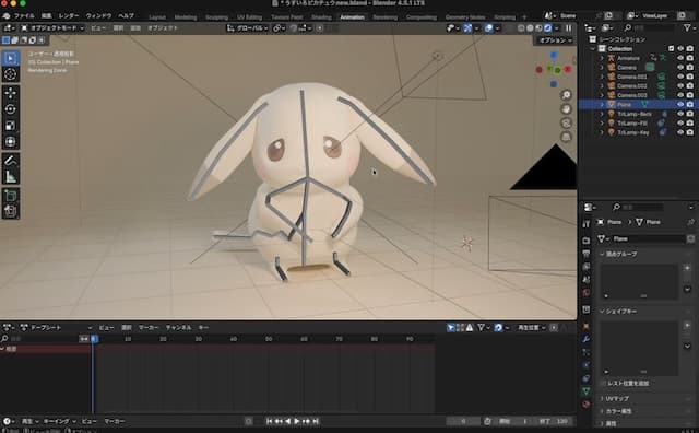 blenderで作成中の画面はこんな感じです。