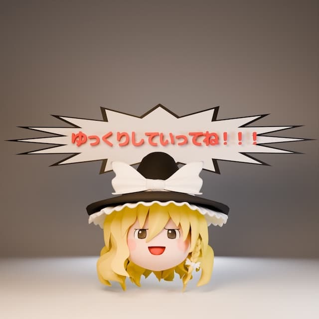 はい、そんなわけで今回は無料の3D CGソフト「blender」で作った「ゆっくり魔理沙」の3Dモデルを紹介しました。