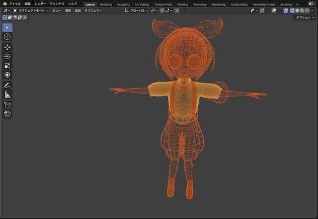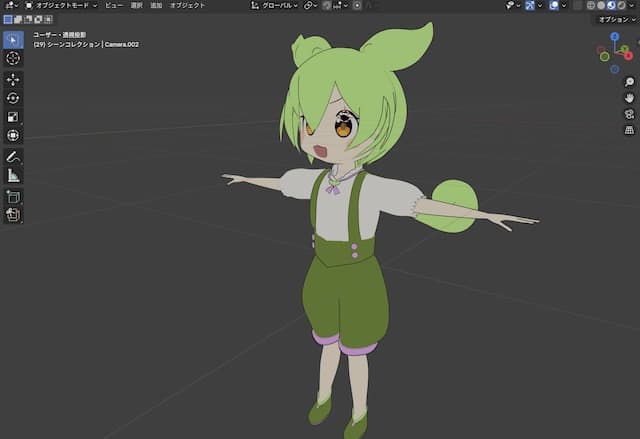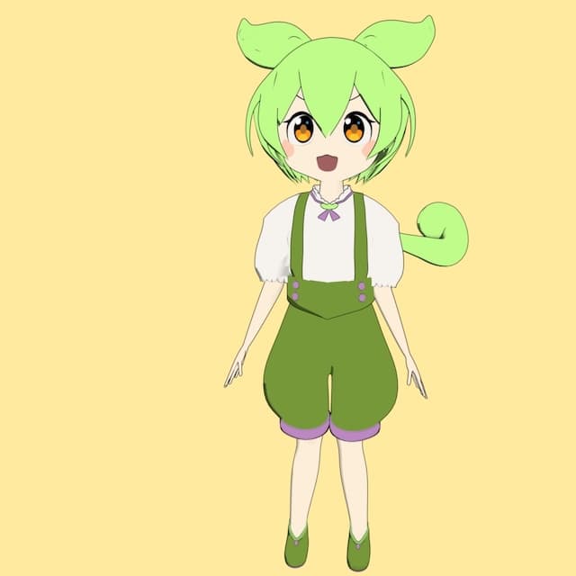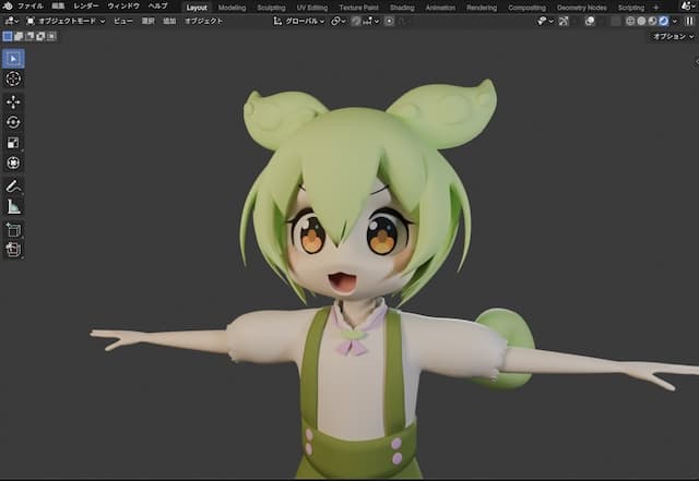 こちらがblenderでモデリングした「ずんだもん」の3Dモデルです。